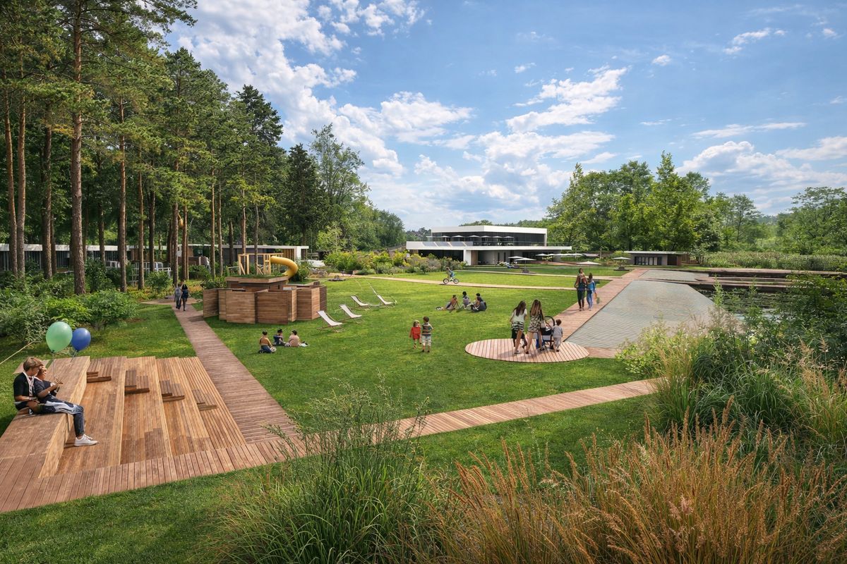 W odpowiedzi na rosnące potrzeby gości przewidziano także budowę domków letniskowych o wysokim standardzie oraz ofertę dla miłośników aktywnego wypoczynku i rodzin — od nowoczesnych wiat wypoczynkowych, przez miejsca sanitarne i rekreacyjne na polu namiotowo-kempingowym, po nowe ciągi piesze integrujące przestrzeń plaży z pozostałymi funkcjami ośrodka. Plaża ogólnodostępna zostanie uporządkowana i wyposażona w bezpieczne dojścia, strefy brodzika dla najmłodszych oraz wydzielone miejsce dla użytkowników z psami — wszystko to w trosce o różnorodność i komfort korzystania.